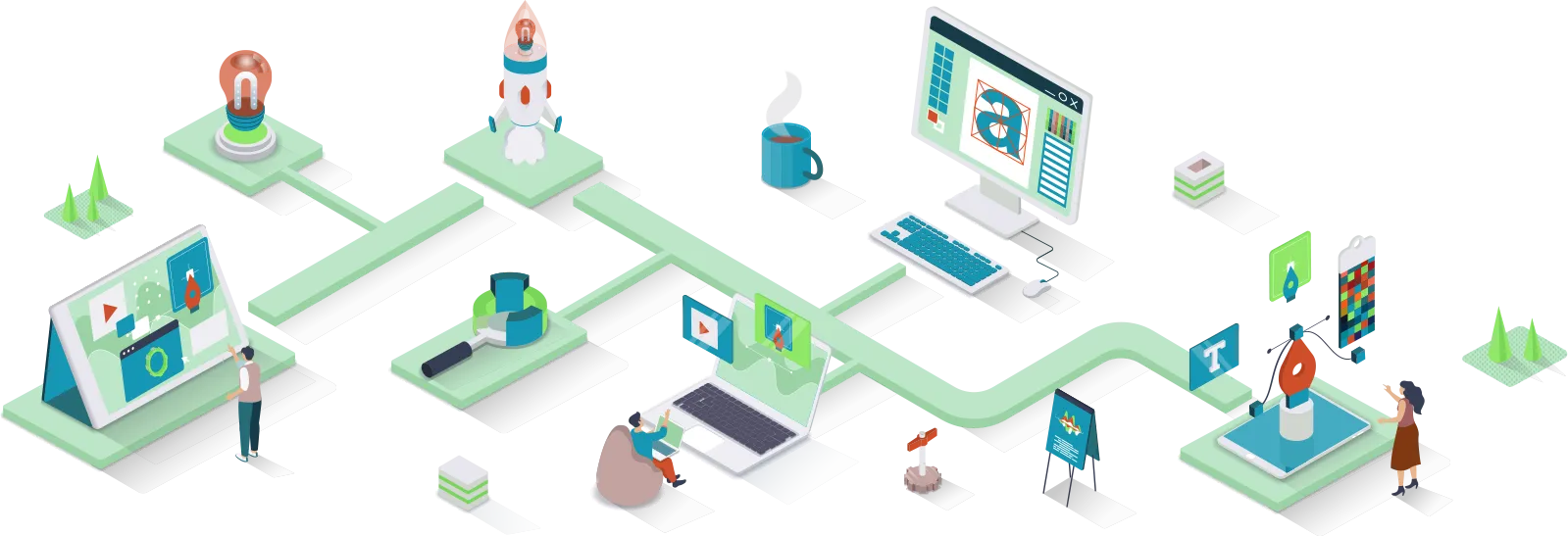 ウェブサイト・ランディングページ制作はもちろん、その後のメンテナンスまでおまかせください。 デザインからコーディングまでワンストップで承ります。